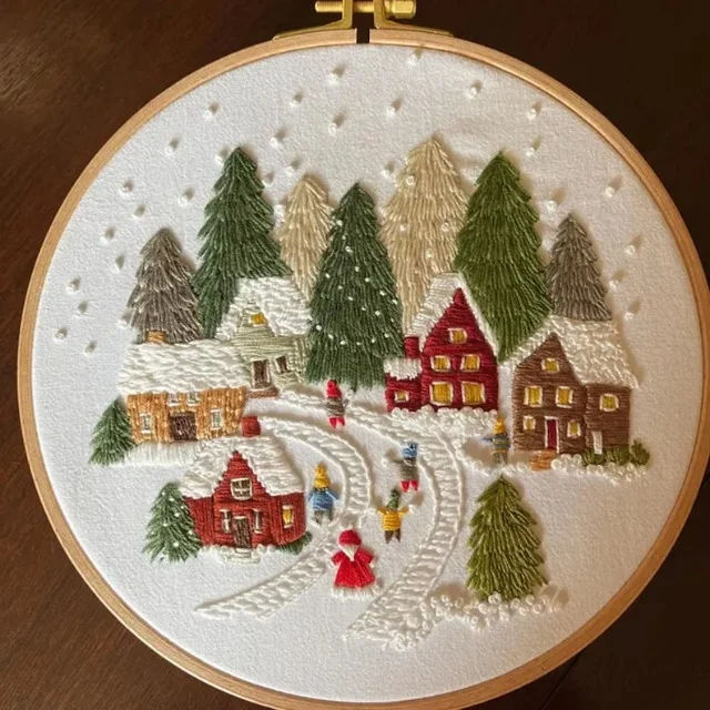 ☃️Perfect for a night of embroidery or for those who love a winter snowy landscape! This Winter Snowy Village Embroidery Craft Kit makes it easy to create your own Christmas party.