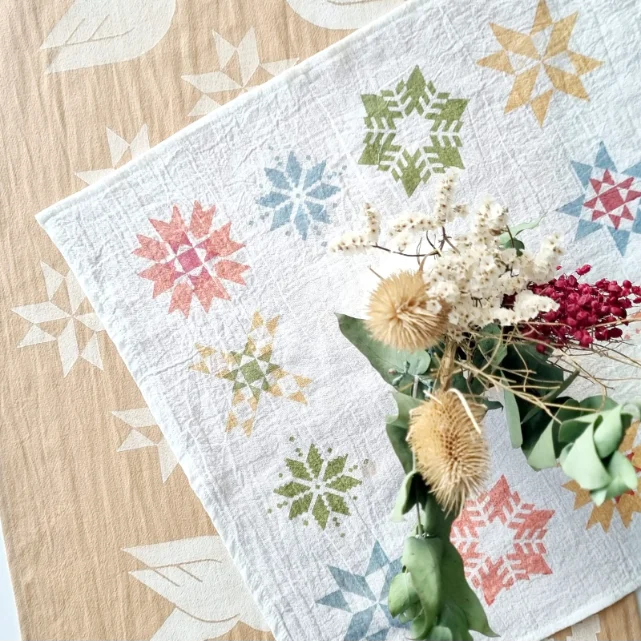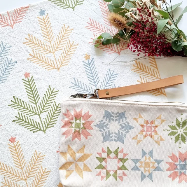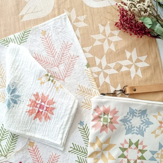 Fabric, paper, wood, cardboard, gift tags, walls—yes, walls. Add paint, ink, or screen-printing colors and transform anything into Santa-approved decor. 🌟🎄