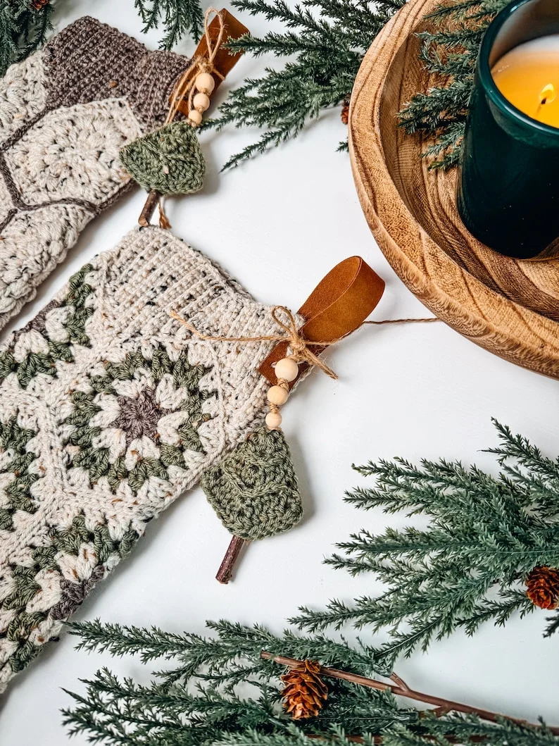 This stocking design shines best with Brava Tweed Worsted yarn in a delightful palette of Wren, Wasabi, and Mink. You’ll also need your trusty 4.0mm crochet hook, yarn needle, removable stitch marker, and maybe a few extra goodies for decoration, like a cinnamon stick, wooden beads, and a wood blocking board. There are also yarn substitutions suggested in the pattern, so feel free to get creative!