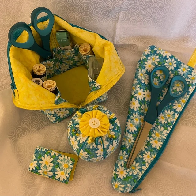 This catch-all organizer also zips up to enclose the contents, making it a perfect way to take your small sewing supplies with you to a class, retreat, or sewing day. When you get to your destination, just unzip the bag, fold the top down, and you're ready to sew!