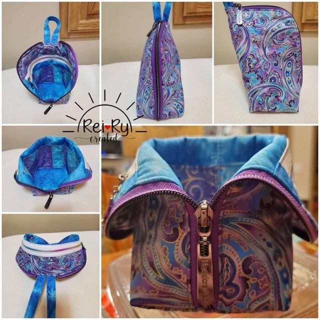 This user-friendly pattern has thorough, clear directions full of step-by-step color pictures and diagrams to guide you easily through the project.It's a useful and enjoyable project that you can finish in a day. The finished bag is approximately 8" tall when zipped up, 3" from front to back, and 4" from side to side. It can easily hold a rotary cutter when zipped up.